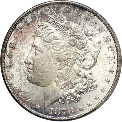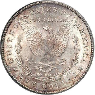 1878-CC Morgan Dollar. PCGS graded MS-65. Nicely toned. Satin fields rippling with cartwheel luster under the color. The more matte designs such as Liberty's frosty cheek stand out nicely against this finish. Well struck on all devices (PCGS # 7080).