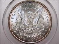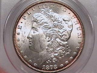 1878-CC Morgan Dollar Ch MS64 PCGS. A spectacular coin with even frosty white lustre and an unbroken halo of gold around the denticles