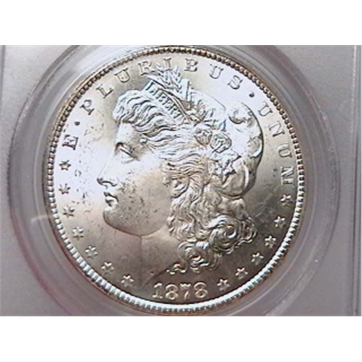 1878-CC Morgan Dollar Ch MS64 PCGS. A gorgeous coin with frosty white lustre rolling over premium surfaces. The cheeks are especially clear, giving this one the look of an MS65. A very high end coin with extraordinary eye appeal.