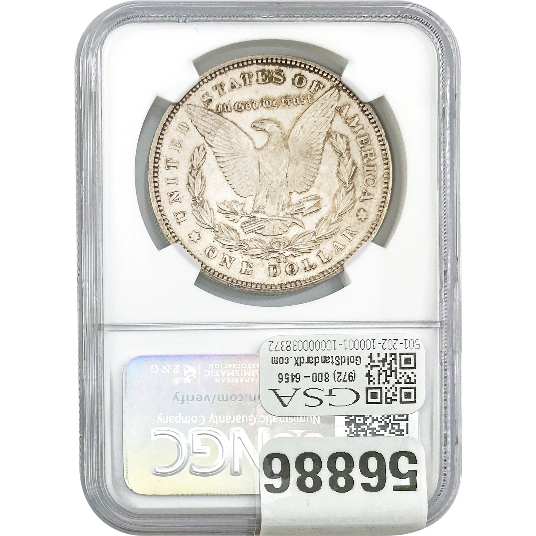 e. Coins sold referencing a third-party grading service are sold “AS IS” without any express or implied warranty, except for a guarantee by GSA that they are genuine. Removal or alteration of the holder, voids all of Bidder’s claims concerning that Product. Certain warranties may be available from the grading services and Bidders are referred to them for further details: Numismatic Guaranty Corporation (NGC), PO Box 4776, Sarasota, FL 34230, www.ngccoin.com/services/writtenguarantee.asp; Professional Coin Grading Services (PCGS), PO Box 9458, Newport Beach, CA 92658, www.pcgs.com/guarantee.html; ANACS, 6555 S. Kenton St., Ste. 303, Englewood, CO 80111; and Independent Coin Grading Co. (ICG), 7901 East Bellview, Ave., Suite 50, Englewood, CO 80111.