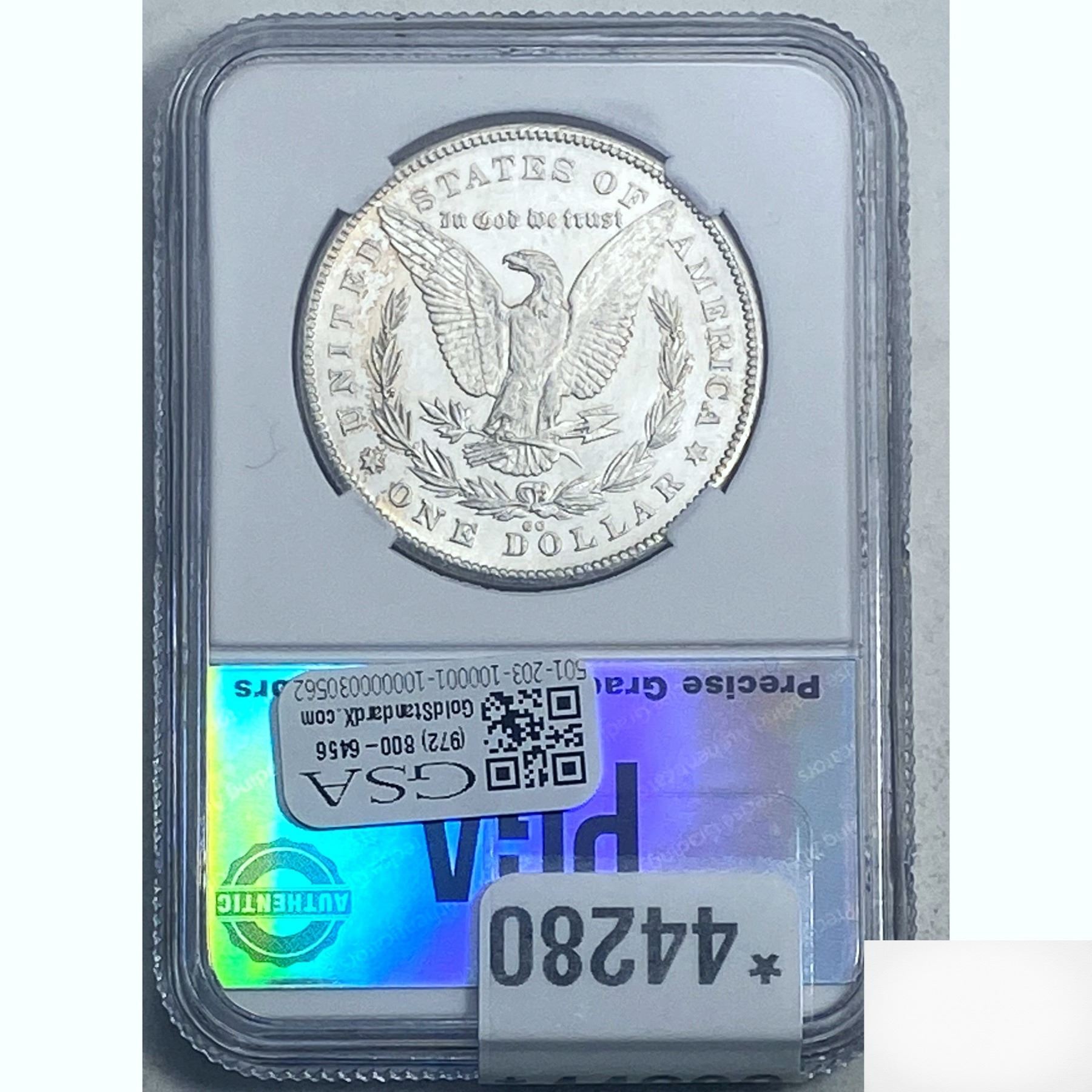 l. All non-certified coins and currency are guaranteed genuine, but are not guaranteed as to grade, since grading is a matter of opinion, an art and not a science, and therefore the description rendered by GSA or any third-party grading service may not agree with the opinion of others (including trained experts), and the same expert may not grade the same item with the same grade at two different times. GSA may, but is not obligated to, express an opinion as to non-certified numismatic items, in GSA’s opinion, or by its employees’ experience and the current interpretation of the American Numismatic Association’s standards as of the date the catalog was prepared. There is no guarantee or warranty expressed or implied that the grading opinions utilized by GSA, if any, will meet the standards of any grading service at any time in the future.