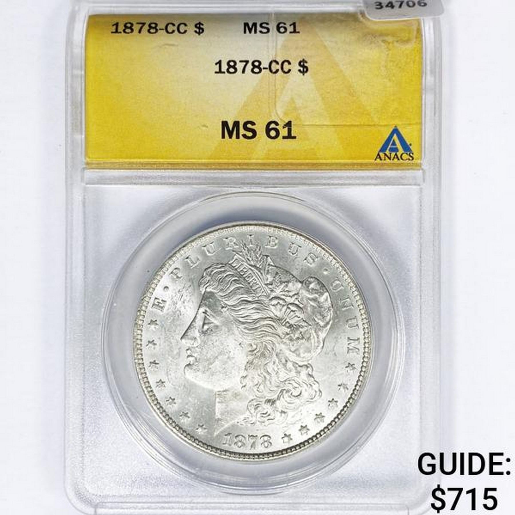 1878-CC Morgan Silver Dollar ANACS MS61