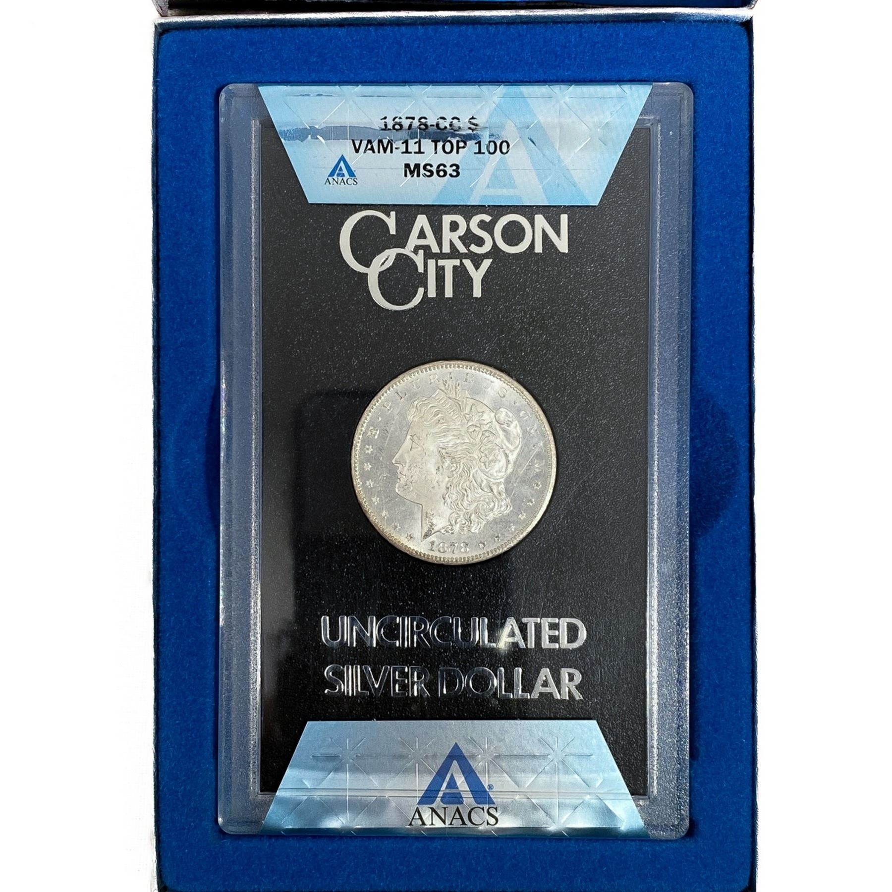 1878-CC Morgan Silver Dollar ANACS MS63 GSA VAM-11