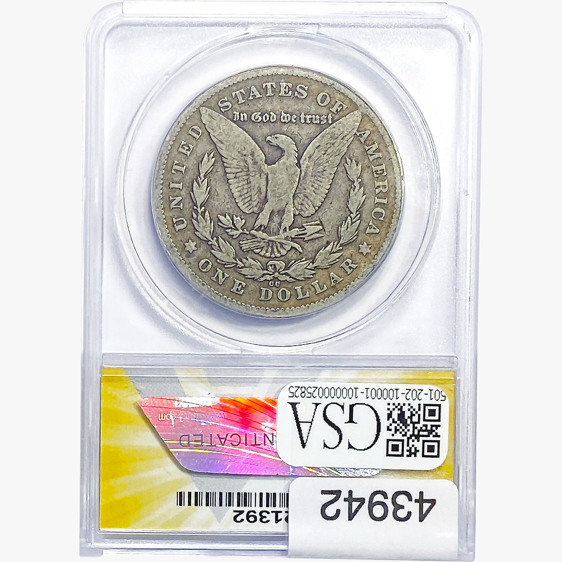 COINS AND CURRENCY LISTED IN GSA’S CATALOG AS GRADED AND ENCAPSULATED BY PCGS, NGC, ANACS, ICG, PCGS CURRENCY, PMG, PCGS BANKNOTE GRADING, CMC OR ANY OTHER THIRD-PARTY GRADING SERVICE ARE LIKEWISE SOLD “AS-IS” EXCEPT AS EXPRESSLY SET FORTH HEREIN. ALL THIRD-PARTY GRADING SERVICE GUARANTEES, INCLUDING AUTHENTICITY, ARE THE SOLE RESPONSIBILITY OF THE THIRD-PARTY GRADING SERVICE AND NOT WARRANTIES OR GUARANTEES OF GSA. BIDDERS SHOULD CONTACT THESE THIRD-PARTY GRADING SERVICES DIRECTLY WITH RESPECT TO ANY CLAIMS OR QUESTIONS THEY MAY HAVE CONCERNING THEIR GUARANTEES AND WARRANTIES. BIDDERS ACKNOWLEDGE AND AGREE THAT AUCTIONEER IS NOT BOUND BY OR LIABLE FOR ANY OPINION OR CERTIFICATION BY ANY THIRD-PARTY GRADING SERVICE. REMOVAL OF A PRODUCT FROM ITS PROTECTIVE CASING OR HOLDER OR ALTERATION OF ANY COIN HOLDER WAIVES ALL RIGHTS CONCERNING THE PRODUCT CONTAINED THEREIN.