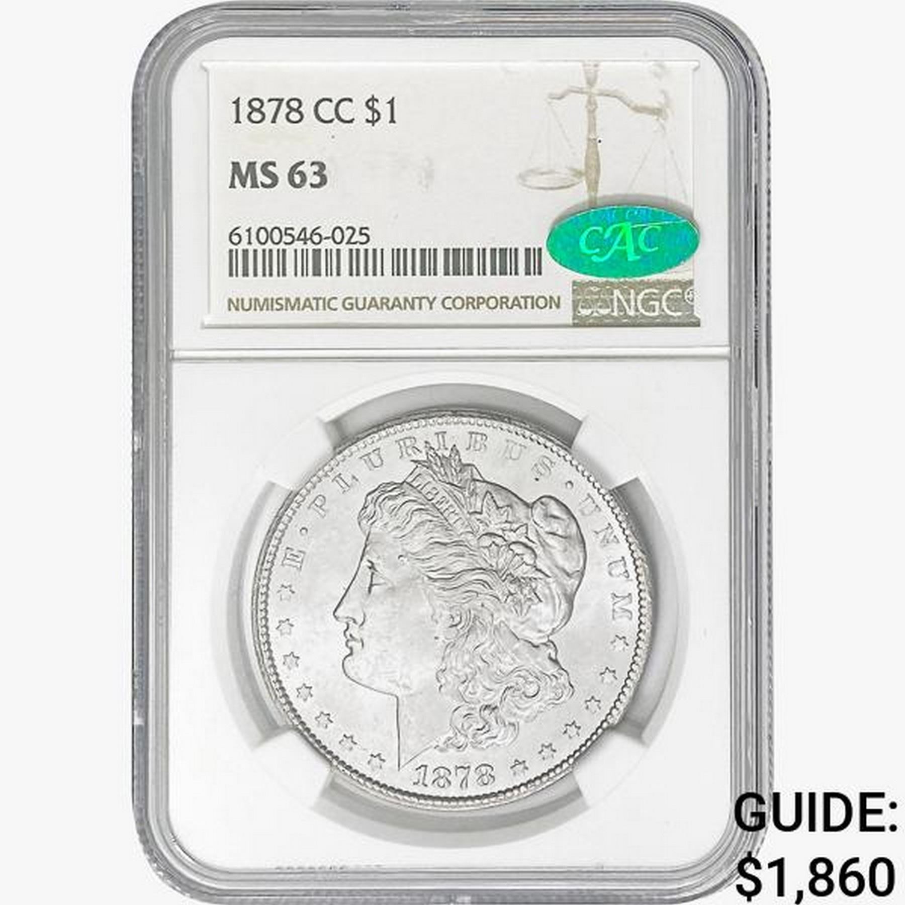 1878-CC Morgan Silver Dollar NGC MS63 CAC
