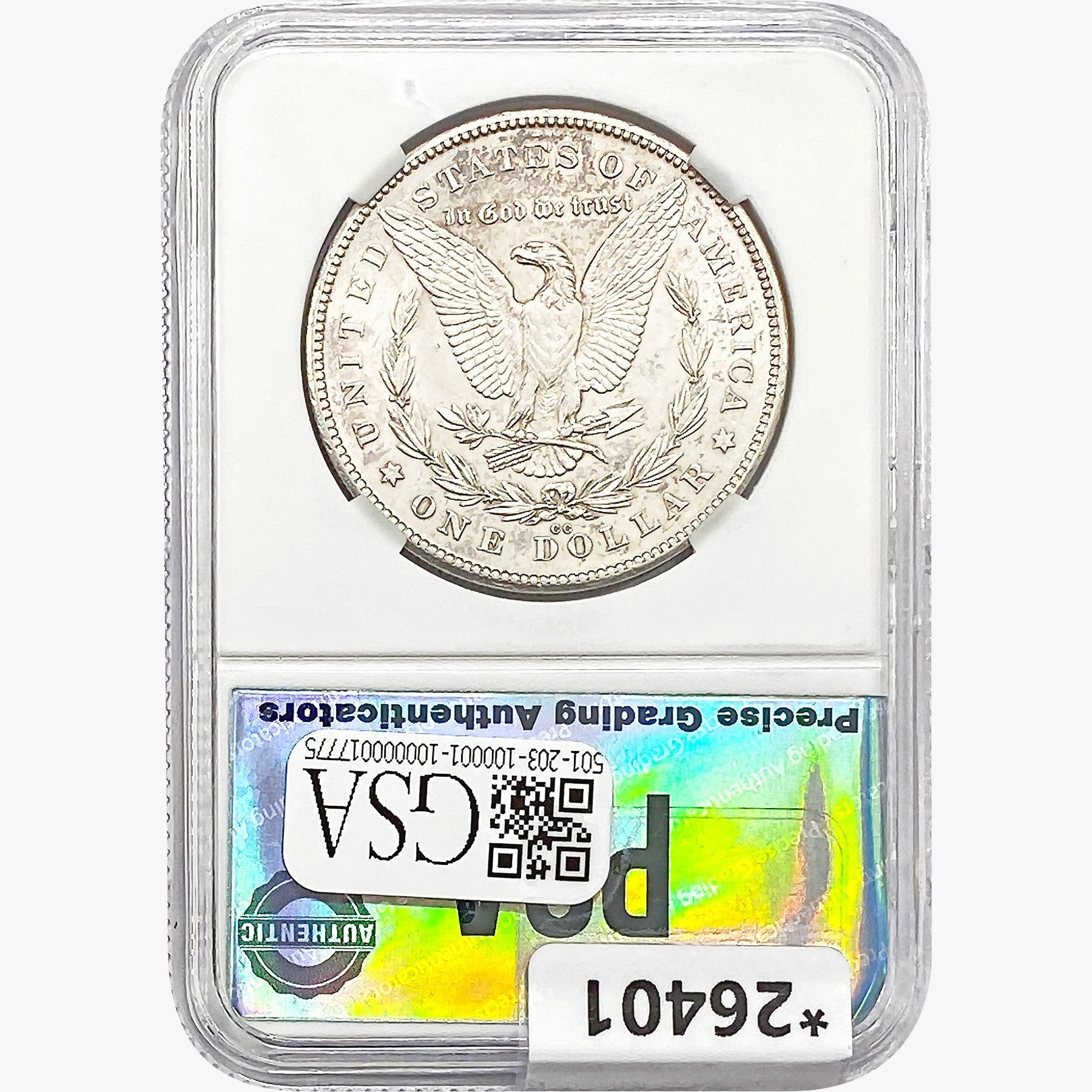 COINS AND CURRENCY LISTED IN GSA’S CATALOG AS GRADED AND ENCAPSULATED BY PCGS, NGC, ANACS, ICG, PCGS CURRENCY, PMG, PCGS BANKNOTE GRADING, CMC OR ANY OTHER THIRD-PARTY GRADING SERVICE ARE LIKEWISE SOLD “AS-IS” EXCEPT AS EXPRESSLY SET FORTH HEREIN. ALL THIRD-PARTY GRADING SERVICE GUARANTEES, INCLUDING AUTHENTICITY, ARE THE SOLE RESPONSIBILITY OF THE THIRD-PARTY GRADING SERVICE AND NOT WARRANTIES OR GUARANTEES OF GSA. BIDDERS SHOULD CONTACT THESE THIRD-PARTY GRADING SERVICES DIRECTLY WITH RESPECT TO ANY CLAIMS OR QUESTIONS THEY MAY HAVE CONCERNING THEIR GUARANTEES AND WARRANTIES. BIDDERS ACKNOWLEDGE AND AGREE THAT AUCTIONEER IS NOT BOUND BY OR LIABLE FOR ANY OPINION OR CERTIFICATION BY ANY THIRD-PARTY GRADING SERVICE. REMOVAL OF A PRODUCT FROM ITS PROTECTIVE CASING OR HOLDER OR ALTERATION OF ANY COIN HOLDER WAIVES ALL RIGHTS CONCERNING THE PRODUCT CONTAINED THEREIN.