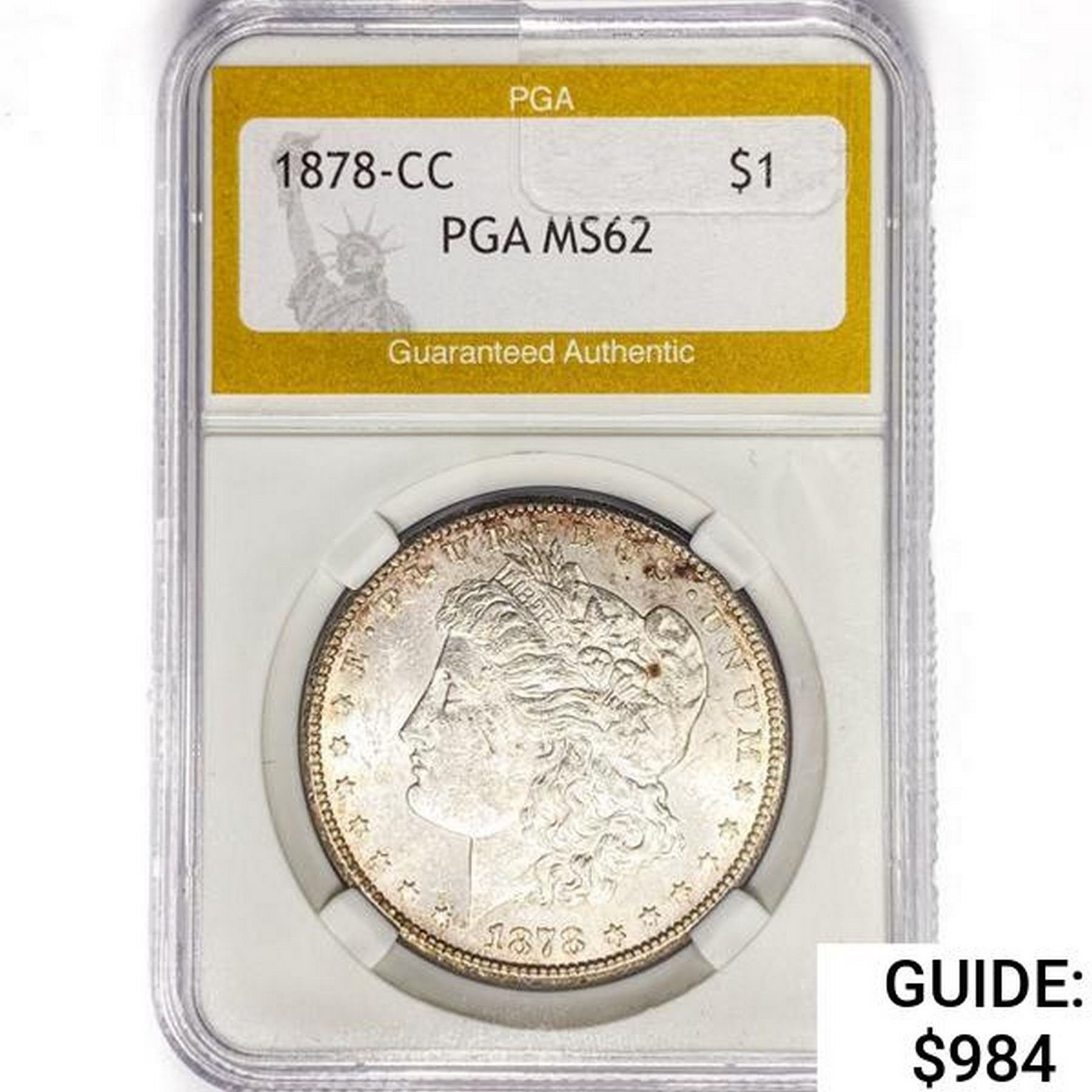 COINS AND CURRENCY LISTED IN GSA’S CATALOG AS GRADED AND ENCAPSULATED BY PCGS, NGC, ANACS, ICG, PCGS CURRENCY, PMG, PCGS BANKNOTE GRADING, CMC OR ANY OTHER THIRD-PARTY GRADING SERVICE ARE LIKEWISE SOLD “AS-IS” EXCEPT AS EXPRESSLY SET FORTH HEREIN. ALL THIRD-PARTY GRADING SERVICE GUARANTEES, INCLUDING AUTHENTICITY, ARE THE SOLE RESPONSIBILITY OF THE THIRD-PARTY GRADING SERVICE AND NOT WARRANTIES OR GUARANTEES OF GSA. BIDDERS SHOULD CONTACT THESE THIRD-PARTY GRADING SERVICES DIRECTLY WITH RESPECT TO ANY CLAIMS OR QUESTIONS THEY MAY HAVE CONCERNING THEIR GUARANTEES AND WARRANTIES. BIDDERS ACKNOWLEDGE AND AGREE THAT AUCTIONEER IS NOT BOUND BY OR LIABLE FOR ANY OPINION OR CERTIFICATION BY ANY THIRD-PARTY GRADING SERVICE. REMOVAL OF A PRODUCT FROM ITS PROTECTIVE CASING OR HOLDER OR ALTERATION OF ANY COIN HOLDER WAIVES ALL RIGHTS CONCERNING THE PRODUCT CONTAINED THEREIN.
