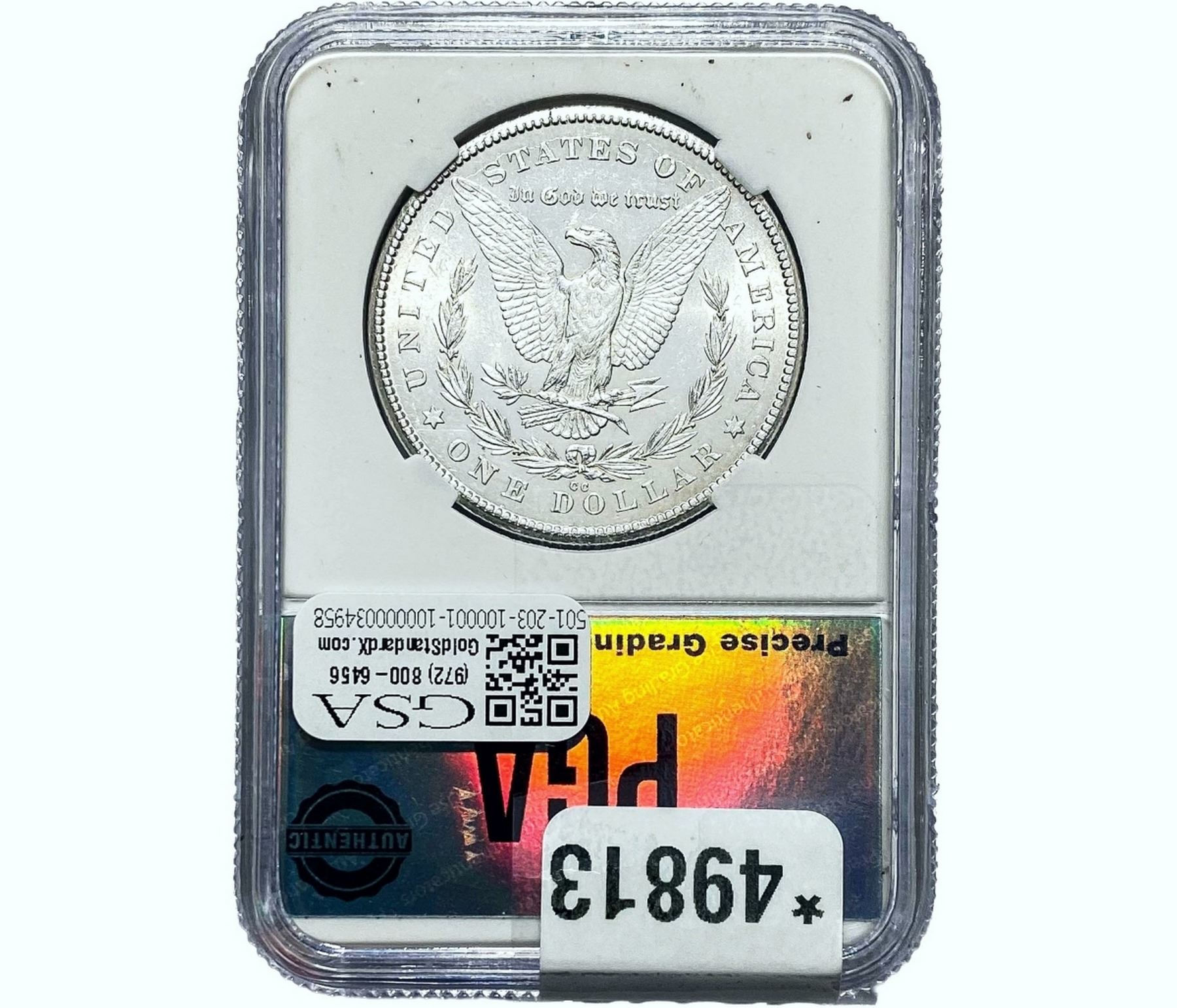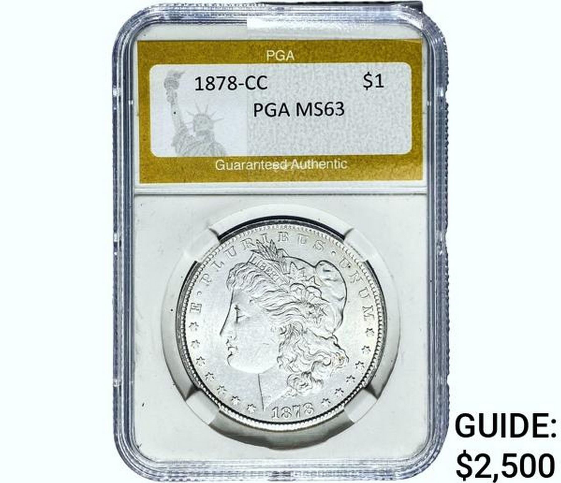 COINS AND CURRENCY LISTED IN GSA’S CATALOG AS GRADED AND ENCAPSULATED BY PCGS, NGC, ANACS, ICG, PCGS CURRENCY, PMG, PCGS BANKNOTE GRADING, CMC OR ANY OTHER THIRD-PARTY GRADING SERVICE ARE LIKEWISE SOLD “AS-IS” EXCEPT AS EXPRESSLY SET FORTH HEREIN. ALL THIRD-PARTY GRADING SERVICE GUARANTEES, INCLUDING AUTHENTICITY, ARE THE SOLE RESPONSIBILITY OF THE THIRD-PARTY GRADING SERVICE AND NOT WARRANTIES OR GUARANTEES OF GSA. BIDDERS SHOULD CONTACT THESE THIRD-PARTY GRADING SERVICES DIRECTLY WITH RESPECT TO ANY CLAIMS OR QUESTIONS THEY MAY HAVE CONCERNING THEIR GUARANTEES AND WARRANTIES. BIDDERS ACKNOWLEDGE AND AGREE THAT AUCTIONEER IS NOT BOUND BY OR LIABLE FOR ANY OPINION OR CERTIFICATION BY ANY THIRD-PARTY GRADING SERVICE. REMOVAL OF A PRODUCT FROM ITS PROTECTIVE CASING OR HOLDER OR ALTERATION OF ANY COIN HOLDER WAIVES ALL RIGHTS CONCERNING THE PRODUCT CONTAINED THEREIN.