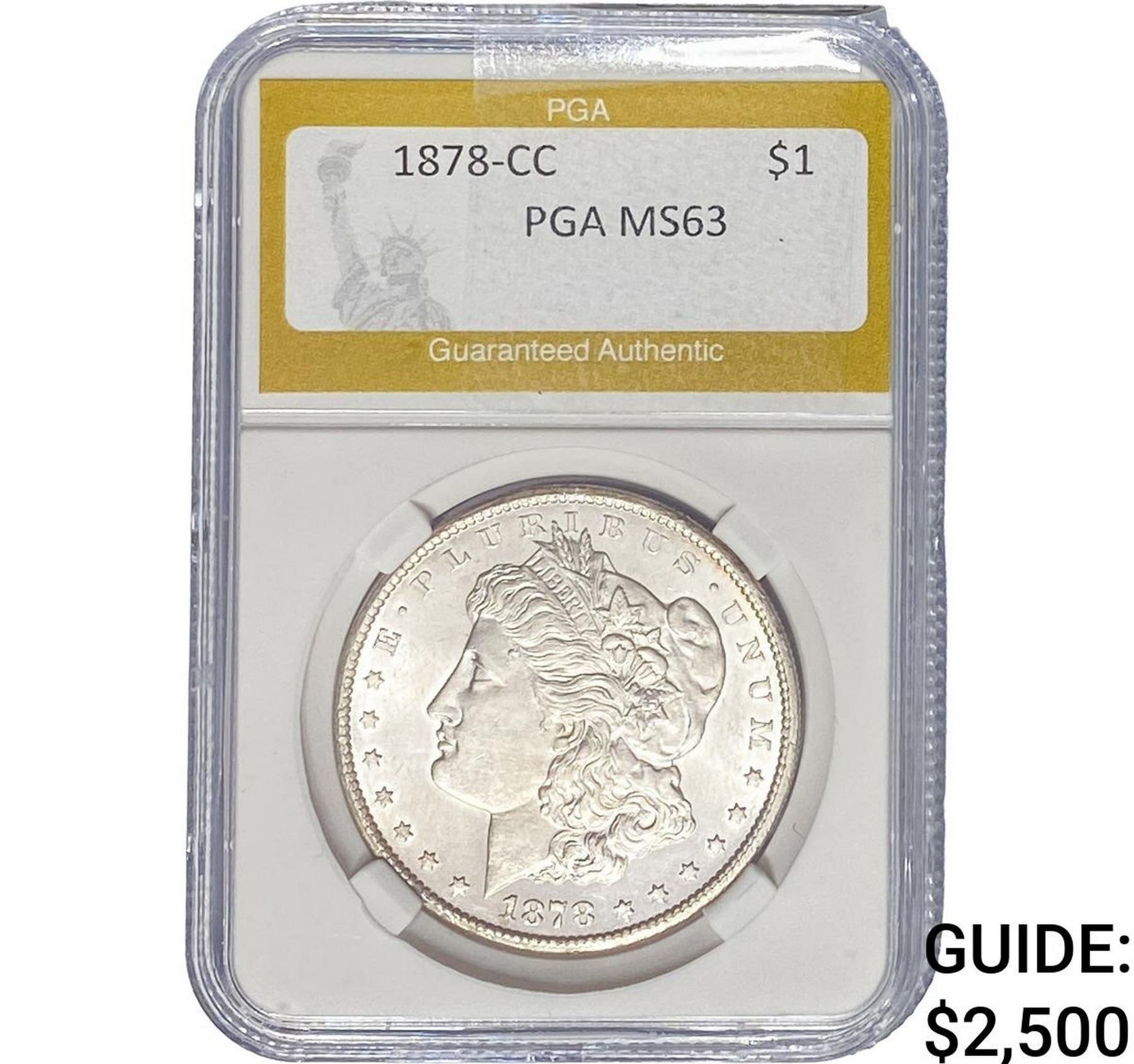 COINS AND CURRENCY LISTED IN GSA’S CATALOG AS GRADED AND ENCAPSULATED BY PCGS, NGC, ANACS, ICG, PCGS CURRENCY, PMG, PCGS BANKNOTE GRADING, CMC OR ANY OTHER THIRD-PARTY GRADING SERVICE ARE LIKEWISE SOLD “AS-IS” EXCEPT AS EXPRESSLY SET FORTH HEREIN. ALL THIRD-PARTY GRADING SERVICE GUARANTEES, INCLUDING AUTHENTICITY, ARE THE SOLE RESPONSIBILITY OF THE THIRD-PARTY GRADING SERVICE AND NOT WARRANTIES OR GUARANTEES OF GSA. BIDDERS SHOULD CONTACT THESE THIRD-PARTY GRADING SERVICES DIRECTLY WITH RESPECT TO ANY CLAIMS OR QUESTIONS THEY MAY HAVE CONCERNING THEIR GUARANTEES AND WARRANTIES. BIDDERS ACKNOWLEDGE AND AGREE THAT AUCTIONEER IS NOT BOUND BY OR LIABLE FOR ANY OPINION OR CERTIFICATION BY ANY THIRD-PARTY GRADING SERVICE. REMOVAL OF A PRODUCT FROM ITS PROTECTIVE CASING OR HOLDER OR ALTERATION OF ANY COIN HOLDER WAIVES ALL RIGHTS CONCERNING THE PRODUCT CONTAINED THEREIN.