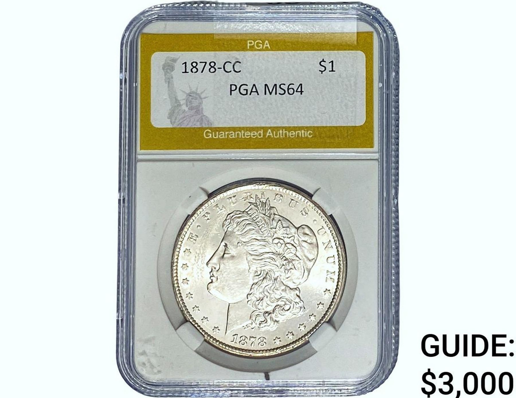 COINS AND CURRENCY LISTED IN GSA’S CATALOG AS GRADED AND ENCAPSULATED BY PCGS, NGC, ANACS, ICG, PCGS CURRENCY, PMG, PCGS BANKNOTE GRADING, CMC OR ANY OTHER THIRD-PARTY GRADING SERVICE ARE LIKEWISE SOLD “AS-IS” EXCEPT AS EXPRESSLY SET FORTH HEREIN. ALL THIRD-PARTY GRADING SERVICE GUARANTEES, INCLUDING AUTHENTICITY, ARE THE SOLE RESPONSIBILITY OF THE THIRD-PARTY GRADING SERVICE AND NOT WARRANTIES OR GUARANTEES OF GSA. BIDDERS SHOULD CONTACT THESE THIRD-PARTY GRADING SERVICES DIRECTLY WITH RESPECT TO ANY CLAIMS OR QUESTIONS THEY MAY HAVE CONCERNING THEIR GUARANTEES AND WARRANTIES. BIDDERS ACKNOWLEDGE AND AGREE THAT AUCTIONEER IS NOT BOUND BY OR LIABLE FOR ANY OPINION OR CERTIFICATION BY ANY THIRD-PARTY GRADING SERVICE. REMOVAL OF A PRODUCT FROM ITS PROTECTIVE CASING OR HOLDER OR ALTERATION OF ANY COIN HOLDER WAIVES ALL RIGHTS CONCERNING THE PRODUCT CONTAINED THEREIN.