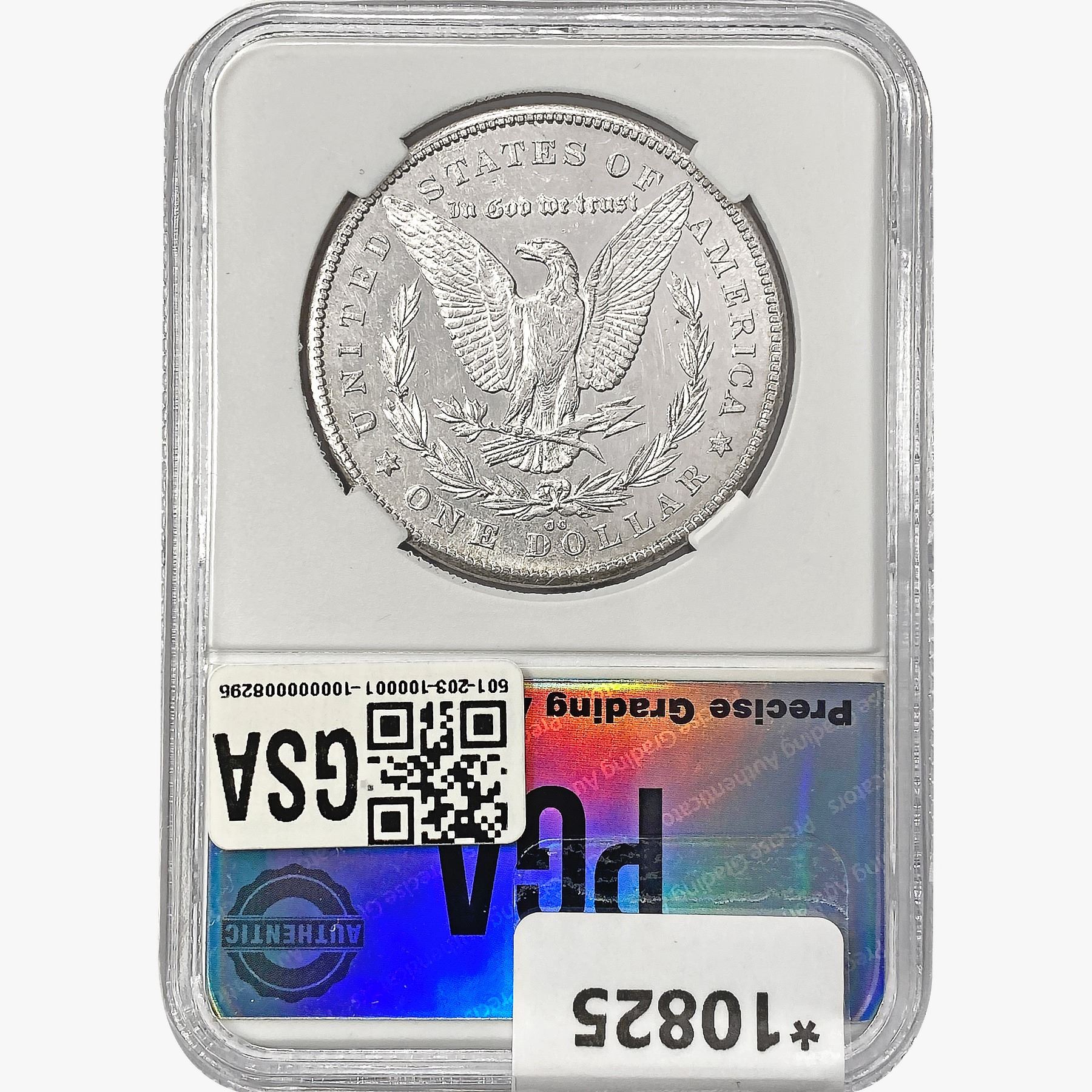 COINS AND CURRENCY LISTED IN GSA’S CATALOG AS GRADED AND ENCAPSULATED BY PCGS, NGC, ANACS, ICG, PCGS CURRENCY, PMG, PCGS BANKNOTE GRADING, CMC OR ANY OTHER THIRD-PARTY GRADING SERVICE ARE LIKEWISE SOLD “AS-IS” EXCEPT AS EXPRESSLY SET FORTH HEREIN. ALL THIRD-PARTY GRADING SERVICE GUARANTEES, INCLUDING AUTHENTICITY, ARE THE SOLE RESPONSIBILITY OF THE THIRD-PARTY GRADING SERVICE AND NOT WARRANTIES OR GUARANTEES OF GSA. BIDDERS SHOULD CONTACT THESE THIRD-PARTY GRADING SERVICES DIRECTLY WITH RESPECT TO ANY CLAIMS OR QUESTIONS THEY MAY HAVE CONCERNING THEIR GUARANTEES AND WARRANTIES. BIDDERS ACKNOWLEDGE AND AGREE THAT AUCTIONEER IS NOT BOUND BY OR LIABLE FOR ANY OPINION OR CERTIFICATION BY ANY THIRD-PARTY GRADING SERVICE. REMOVAL OF A PRODUCT FROM ITS PROTECTIVE CASING OR HOLDER OR ALTERATION OF ANY COIN HOLDER WAIVES ALL RIGHTS CONCERNING THE PRODUCT CONTAINED THEREIN.