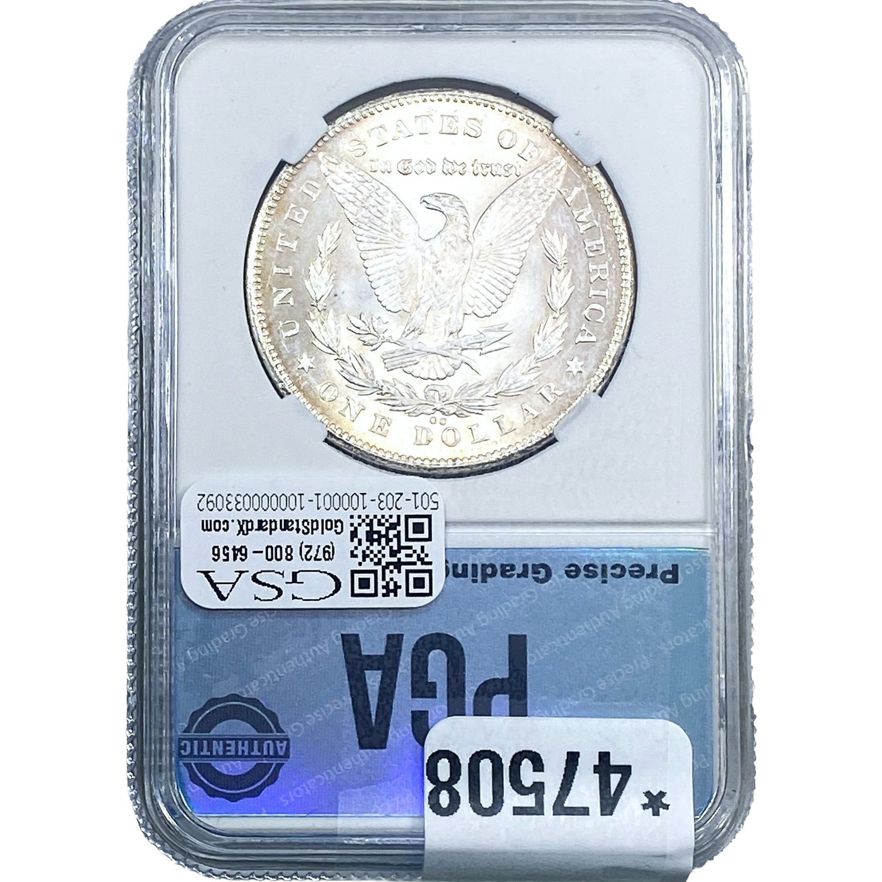 e. Coins sold referencing a third-party grading service are sold “AS IS” without any express or implied warranty, except for a guarantee by GSA that they are genuine. Removal or alteration of the holder, voids all of Bidder’s claims concerning that Product. Certain warranties may be available from the grading services and Bidders are referred to them for further details: Numismatic Guaranty Corporation (NGC), PO Box 4776, Sarasota, FL 34230, www.ngccoin.com/services/writtenguarantee.asp; Professional Coin Grading Services (PCGS), PO Box 9458, Newport Beach, CA 92658, www.pcgs.com/guarantee.html; ANACS, 6555 S. Kenton St., Ste. 303, Englewood, CO 80111; and Independent Coin Grading Co. (ICG), 7901 East Bellview, Ave., Suite 50, Englewood, CO 80111.