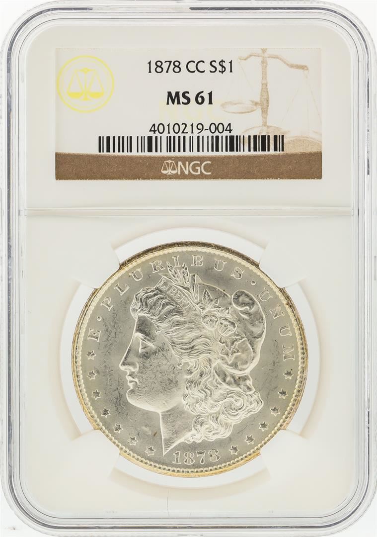 One 1878-CC NGC MS61 Morgan Silver Dollar. NGC Certified.