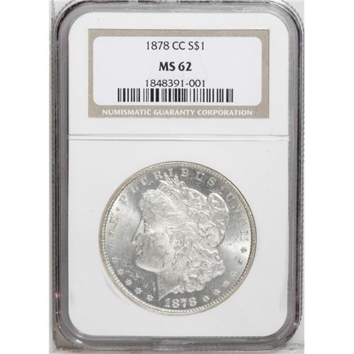 1878-CC S$1 MS62 NGC. A boldly struck piece, untoned s