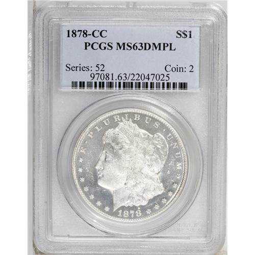 <B>1878-CC S$1 MS63 Deep Mirror Prooflike PCGS.</B></I> Flashy with immense contrast between the fields and the boldly struck, heavily frosted devices. Highly appealing despite the lightly abraded obverse.<BR><I>From The Park Cities Collection.</B></I><BR><BR><b>Shipping:</b> Coin/Currency (<a target="_blank" href="http://www.heritageauctions.com/common/shipping.php">view shipping information</a>)
