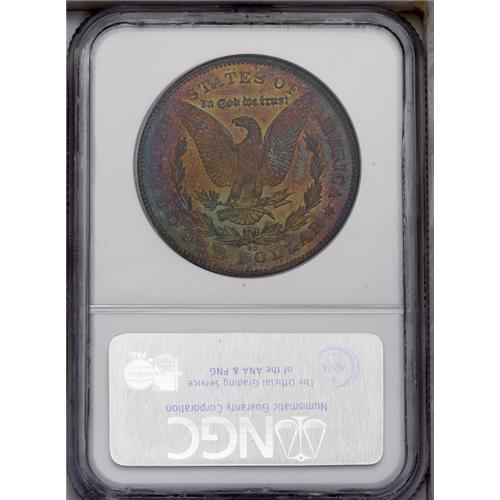 <B>1878-CC<img border='0' src='http://www.heritagecoins.com/images/star.gif' width=10 height=10>$1> MS64 NGC.</B></I> This is an amazing toned near-Gem example with lustrous gray-brown color on the obverse, accented by splashes of gold and blue. The reverse has a dazzling display of rainbow iridescence.<BR><I>From The Lewis (Tahoe) Collection.</B></I>