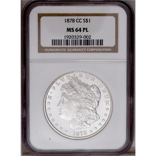 1878-CC S$1 MS64 Prooflike NGC. Frosted, sharply struc 1878-CC[img border='0' src='http://www.herita