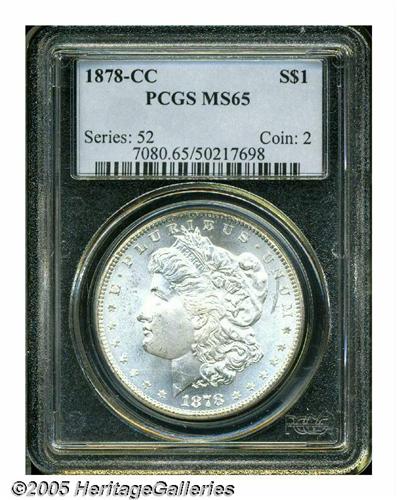 <B>1878-CC<S$1> MS65 PCGS.</B></I> A fully brilliant Gem with exceptional eye appeal. The devices are frosty with satiny white luster in the fields.