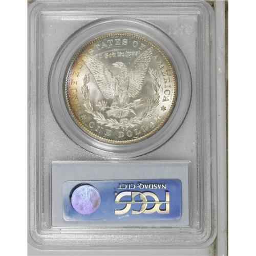 <B>1878-CC S$1 MS65 PCGS.</B></I> Well struck with satiny, intensely lustrous surfaces. Both sides display an arc of vivid rainbow toning along the left border, but are otherwise untoned. A few minor scrapes and luster grazes are noted for accuracy's sake.<BR><BR><b>Shipping:</b> Coins & Currency (<a target="_blank" href="http://www.heritageauctions.com/common/shipping.php">view shipping information</a>)