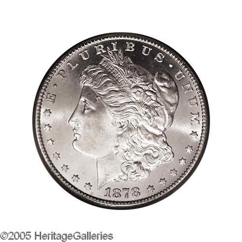 <B>1878-CC<S$1> MS65 Prooflike PCGS.</B></I> An unusual date to find with prooflike surfaces, only 85 such pieces have been certified by PCGS with a mere 12 finer (11/05). Each side is snow-white with chalky devices set against reflective fields. Fully struck throughout with no obvious abrasions.