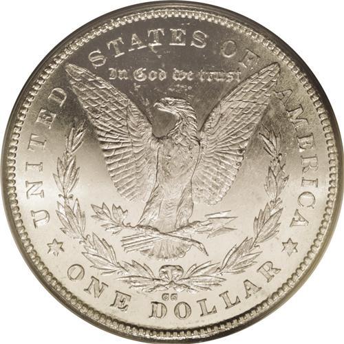 <B>1878-CC<img border='0' src='http://www.heritagecoins.com/images/star.gif' width=10 height=10>$1> MS65 Prooflike PCGS.</B></I> Fewer than 2,000 Prooflike 1878-CC examples have been certified by PCGS and NGC, mostly occurring through the near-Gem grade level. The Gem specimen offered here is exquisitely struck, including nice definition in the hair over Liberty's ear and on the eagle's breast. The mildly frosted motifs stand out against the prooflike fields, and both sides are essentially untoned. A few minute marks are noted on Liberty's cheek and the eagle's breast, and a light toning streak appears on the cheekbone. Population: 86 in 65 Prooflike, 12 finer (5/06).