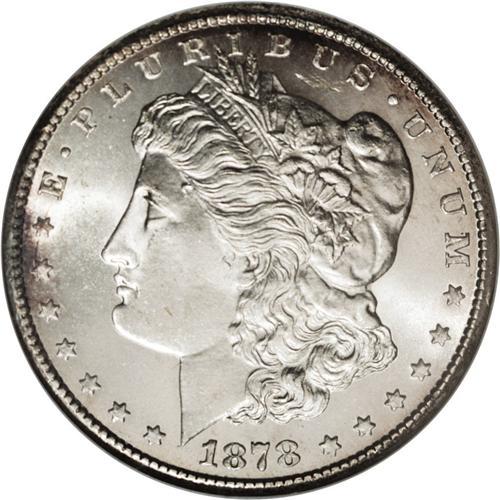 <B>1878-CC S$1 MS66 NGC.</B></I> David Bowers (1993) writes that: "Most 1878-CC dollars encountered in the numismatic marketplace are in Mint State,...are quite lustrous, and are extensively bagmarked." The Premium Gem specimen offered in this lot displays fully lustrous surfaces that are untoned except for whispers of lavender, golden-brown, and cobalt-blue patina that make occasional visits to some of the marginal areas. The strike is superb, resulting in crisp delineation in the hair around Liberty's ear and in the eagle's breast feathers. This example does not fit Bowers' profile with respect to being "extensively bagmarked" - indeed, the surfaces of this coin are remarkably clean and well preserved. The few minor luster grazes on Liberty's cheek and neck and in the left obverse fields preclude what might be an even higher grade.<BR><BR><b>Shipping:</b> Coins & Currency (<a target="_blank" href="http://www.heritageauctions.com/common/shipping.php">view shipping information</a>)