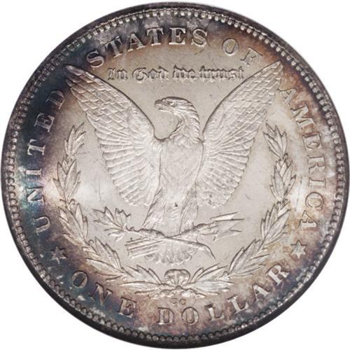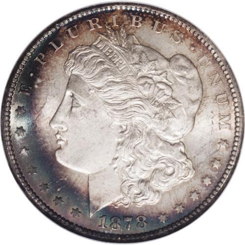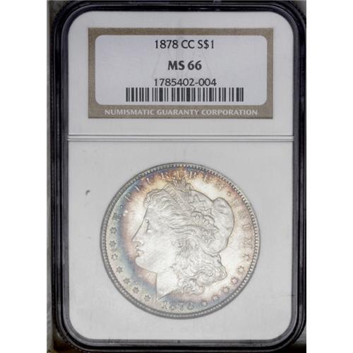 <B>1878-CC<img border='0' src='http://www.heritagecoins.com/images/star.gif' width=10 height=10>$1> MS66 NGC.</B></I> Not only is this coin a Premium Gem, but it is graced by delightful dark blue and gold toning around the obverse and reverse periphery. The colors have elements of cobalt blue and russet framing Liberty's head as well as the wreath and eagle. Excellent surfaces as expected for the grade, and an impressive coin to represent this popular Carson City issue. <BR><BR><B>Important notice:</B> Heritage usually auctions material at the rate of 200-250 lots per hour. On some occasions eBay Live bid software or the Internet may not be able to keep up with the pace of the auction. We recommend placing a realistic absentee bid now as insurance to avoid disappointment. Occasionally the auctioneer may eliminate or reject an eBay Live bid, and the auctioneer may also reopen a lot after the close of the eBay live bidding (usually because we missed an audience bid), and may reject your bid even if it shows you as the winning bidder. By bidding via eBay Live, you agree that Heritage may award the lot to another bidder at its sole discretion under the circumstances described above or any other reasonable circumstances. Since eBay bids are not shown to us until we open the lot on the floor, we treat those bids just like floor bids. In most cases the floor responds before the eBay bid is presented to us, due to Internet lag time, so for consistency we have made it a policy that floor bids are always considered first over tie eBay live bids. Also please note that all Heritage lots purchased through eBay Live carry a 20% Buyer's Premium. Please make sure you read the Terms and Conditions before you bid. This lot is being auctioned in conjunction with a live floor auction by Heritage Galleries & Auctioneers. All final auction and invoice information will be supplied by Heritage Galleries & Auctioneers, and all other information should be considered preliminary. Lot:3218 <BR><BR><B>Winning Notification and Billing:</B> After the FINAL session in this auction is complete, Heritage will send e-mail and snail mail invoices. This process normally takes several days. All final auction and invoice information will be supplied by Heritage Galleries & Auctioneers, and all other information should be considered preliminary. <BR><BR>This auction will be conducted on a live auction floor and over the Internet through eBay Live. If you choose to place an absentee bid, please take a moment to <font color='#0000ff'><u><a href='http://pages.ebay.com/liveauctions/help/before/laabsentee.html'>learn how eBay Live absentee bidding works</a></u></font><font color='#000000'>
