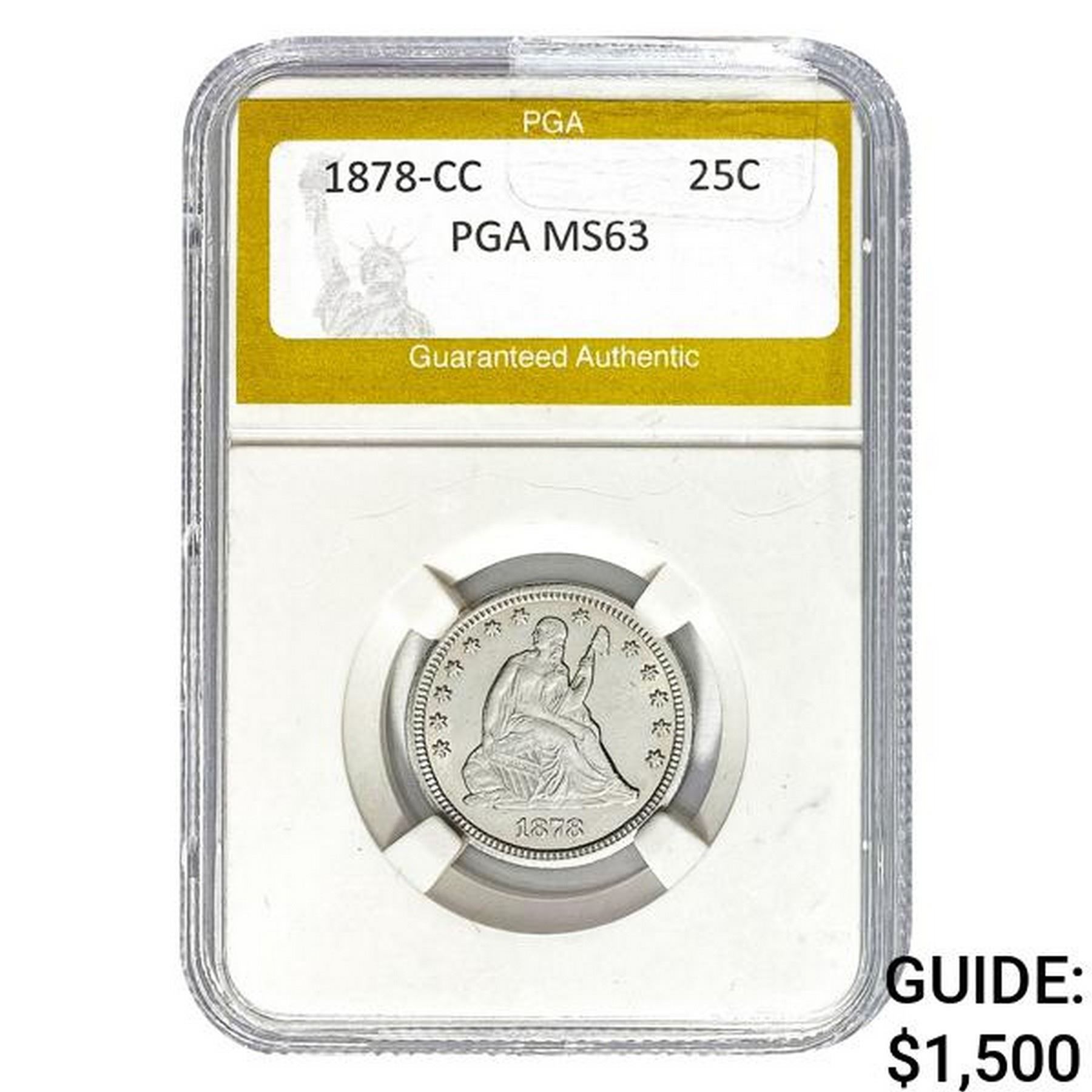 1878-CC Seated Liberty Quarter PGA MS63