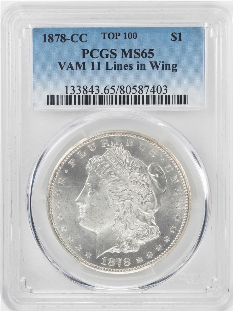 One 1878-CC Top 100 $1 Morgan Silver Dollar Coin PCGS MS65 VAM 11 Line in Wing. PCGS Graded.