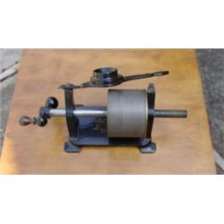 Edison Parlor (tinfoil) phonograph. Circa 1878. Speaker arm pivots from the right side. Solid steel mandrel. Gilt lettered inscription on the japanned iron base indicates it was manufactured by Brehmer Brothers of Philadelphia. With stylus. One of the earliest commercially made phonographs. No. 1741. Only 15 others are known to exist. 13" long, 5" high and 4.75" deep. Good original condition.
