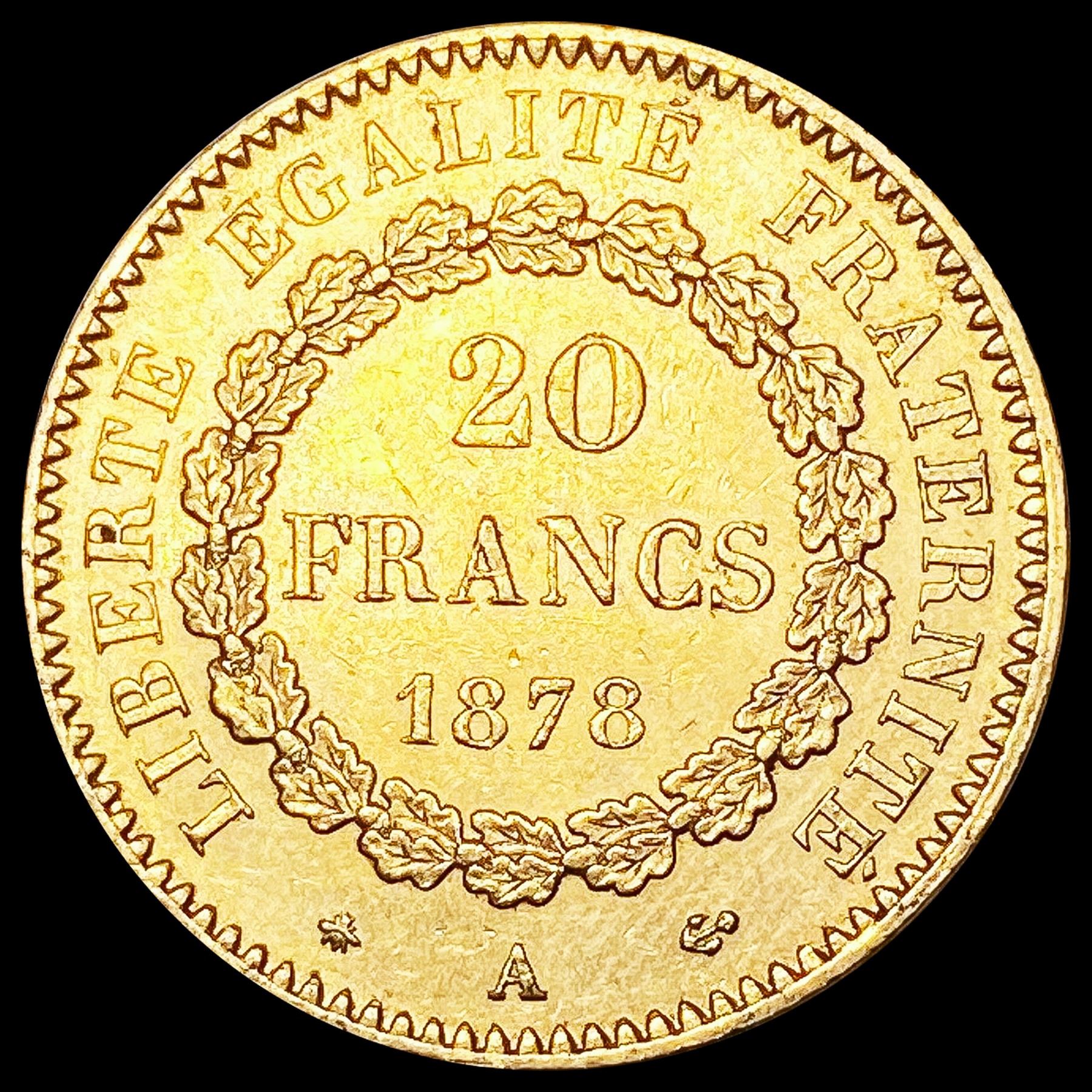 1878 France .1867oz Gold 20 Francs UNCIRCULATED