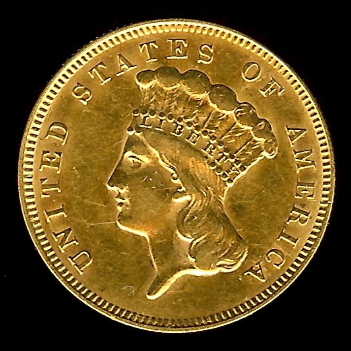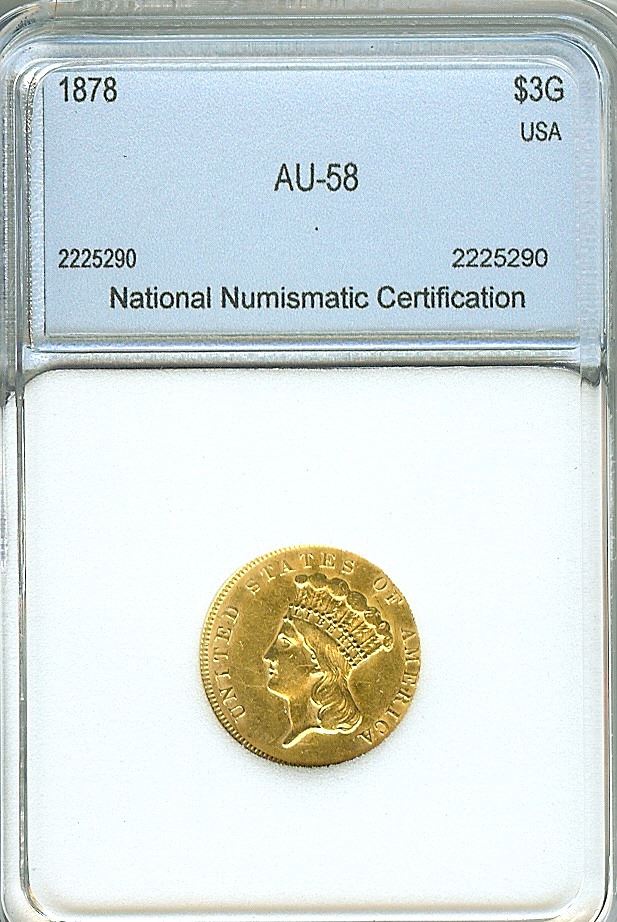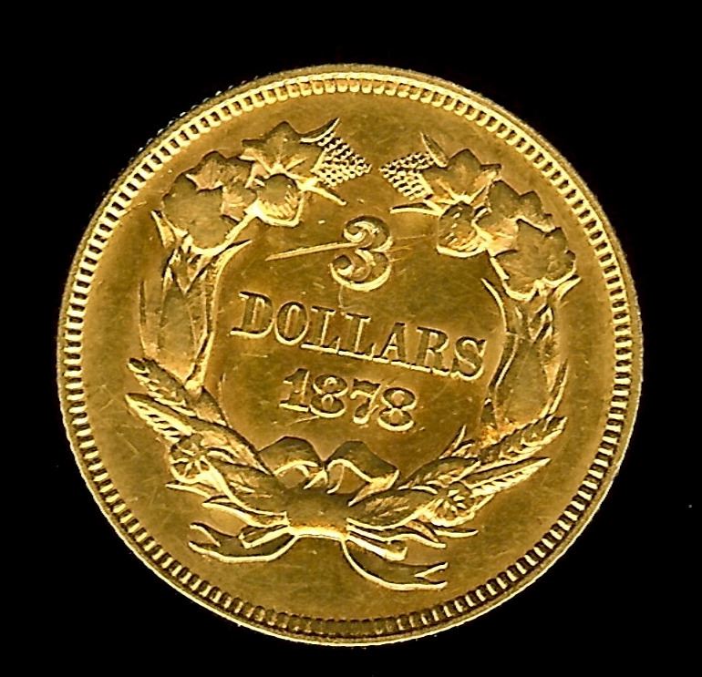 1878 INDIAN PRINCESS GOLD $3 NNC AU58