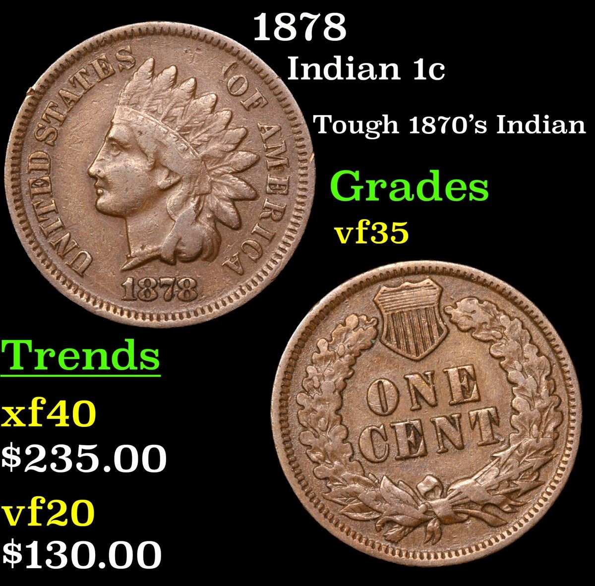 1878 Tough 1870's Indian . Indian Cent 1c Grades vf++.