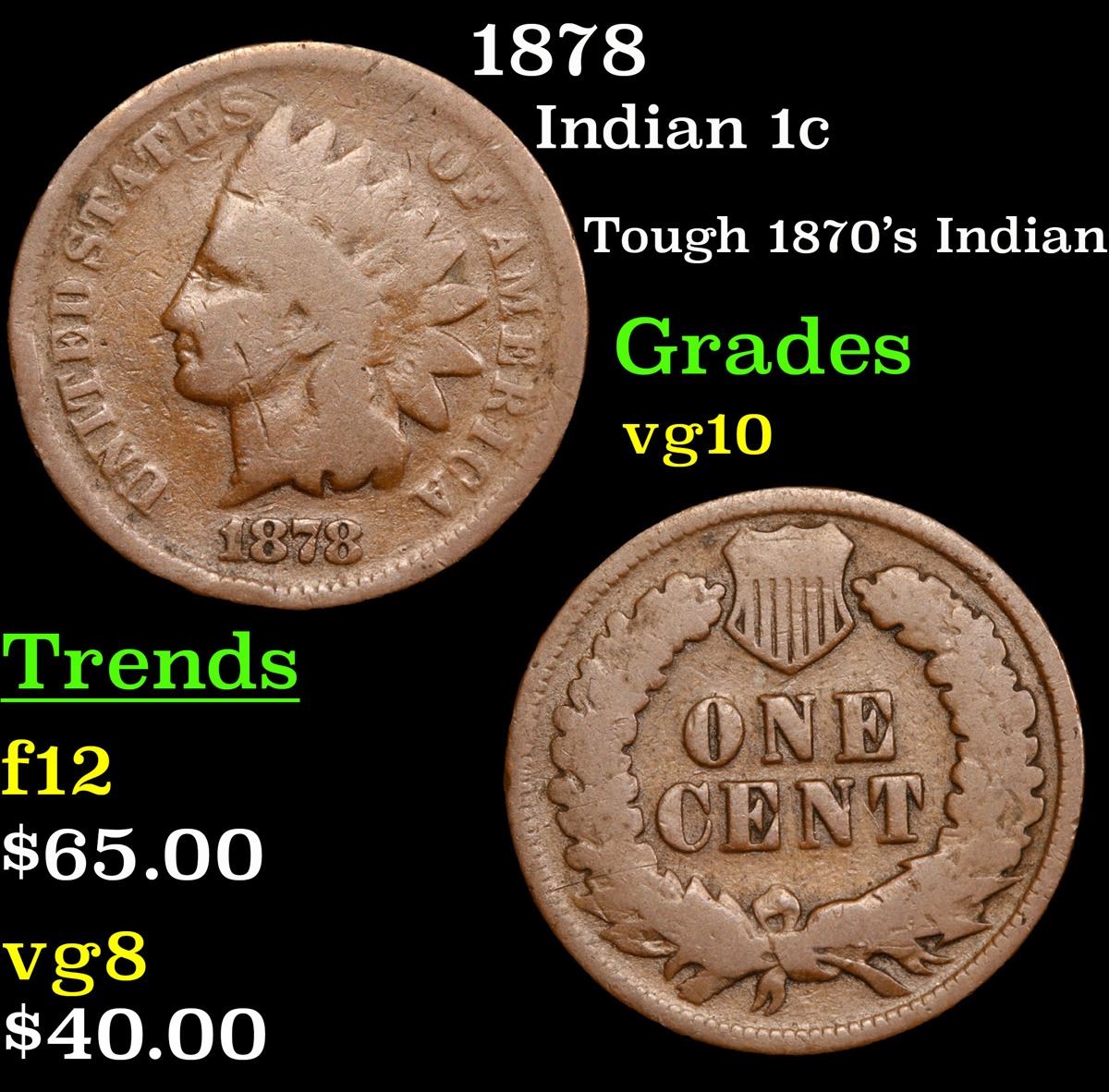 1878 Tough 1870's Indian . Indian Cent 1c Grades vg+.