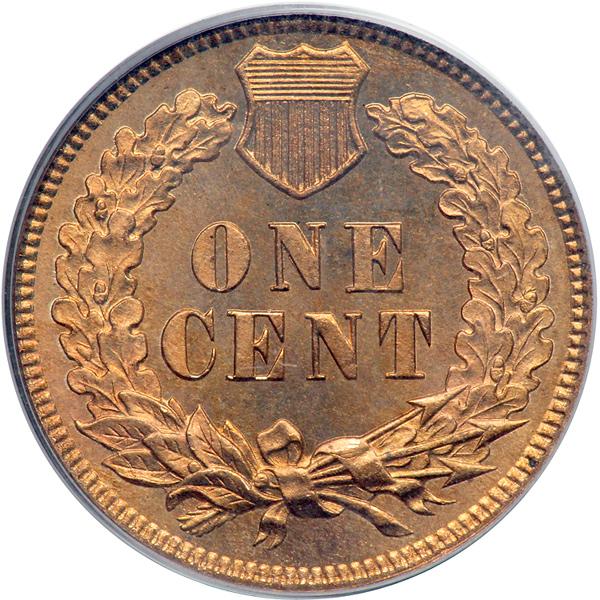 1878 Indian Head Cent. PCGS graded MS-65 Red. Satiny Gem surfaces explode with intense luster and varying shades of coppery to golden red. Nicely struck with just outstanding detail at the feathers and LIBERTY headband, along with full sharp detail in the wreath and shield on the reverse. There is a single tiny mark on the cheek. Free from spots. Pop 47; 13 finer, 12 in 66RD, and 1 in 67RD (PCGS # 2132) .