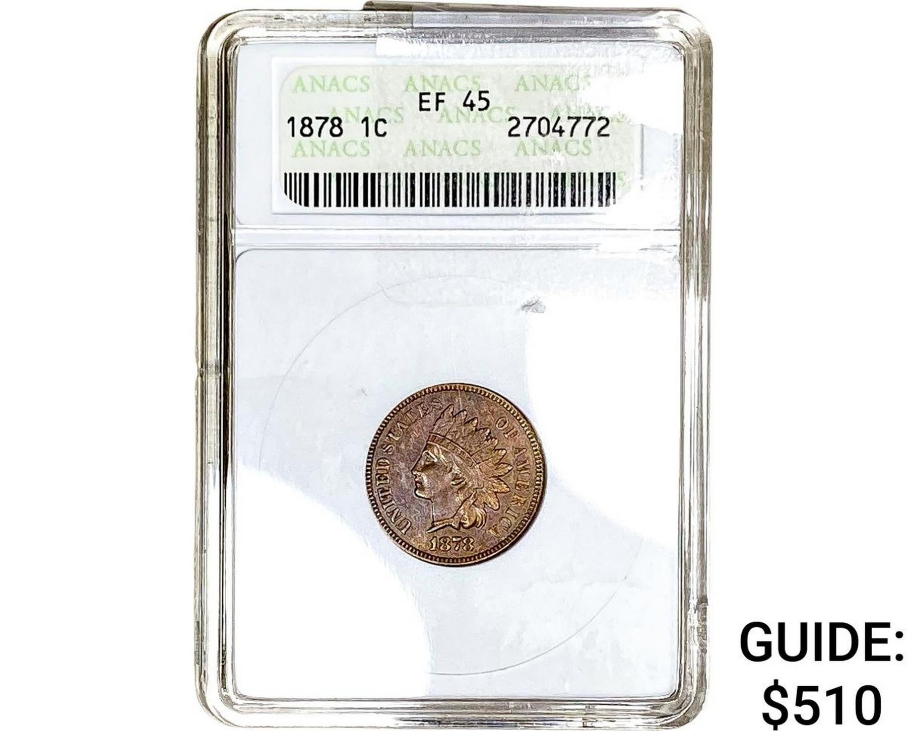 1878 Indian Head Cent ANACS EF45