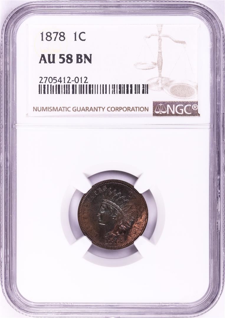 One 1878 Indian Head Cent Coin NGC AU58 BN. NGC Certified.
