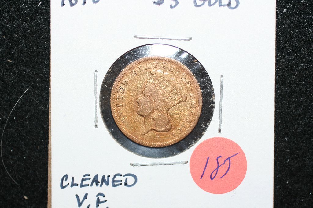 1878 Indian Princess $3 Gold Coin, Cleaned VF