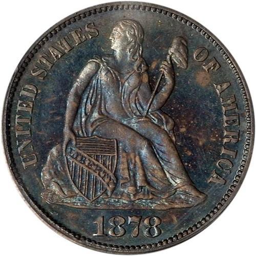 <b>1878 Liberty Seated Dime. PCGS graded Proof 64.</b> Deep original toning. Highly lustrous with the shimmering mirror smoothness seated dime coinage is so well known for in the choice Proofs. Only 800 Proofs minted in 1878 <b>(PCGS # 4775)</b> <i>