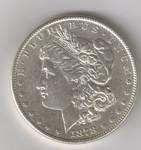 1878 MORGAN SILVER DOLLAR AU CIRCULATED NICE AND BRIGHT. THIS COIN HAS VAMS : OBVERSE - FOURTH STAR FROM RIGHT OF DATE TIP IS BROKEN.POLISH LINE AND DIE CIP IN EAR,DOUBLE WHEAT KERNALS.