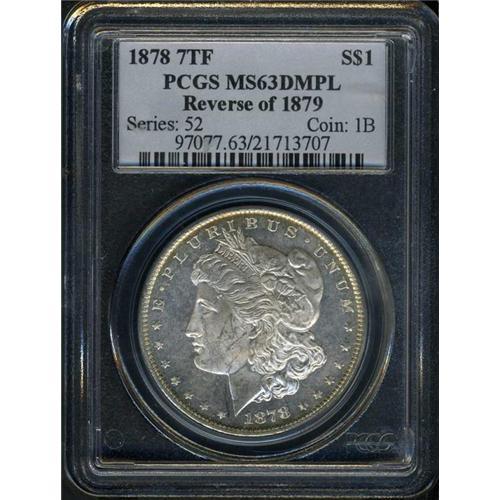 1878 Morgan $1 7 tail feath rev of 1879 PCGS MS63DMPL