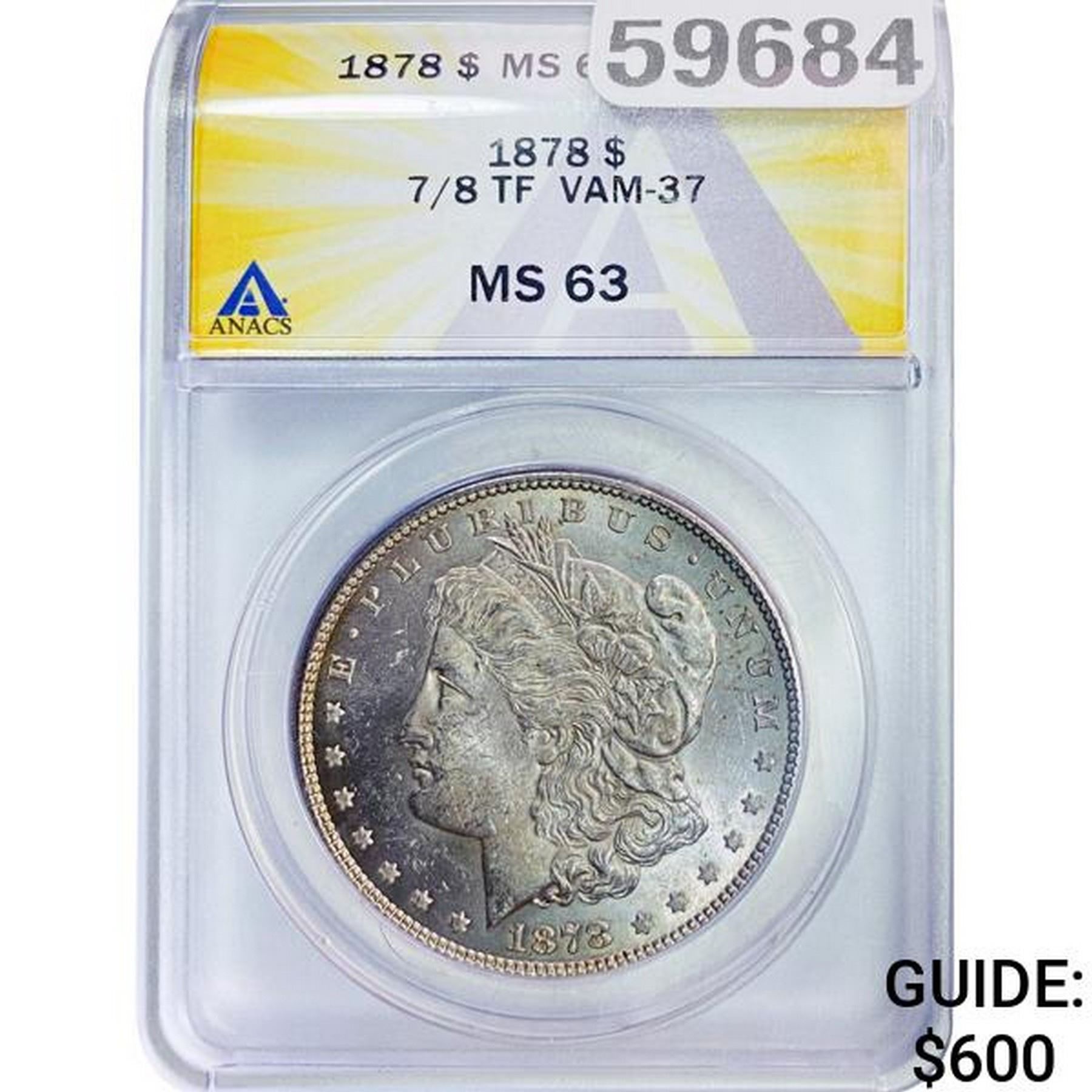 1878 Morgan Dollar 7/8TF VAM-37 ANACS MS