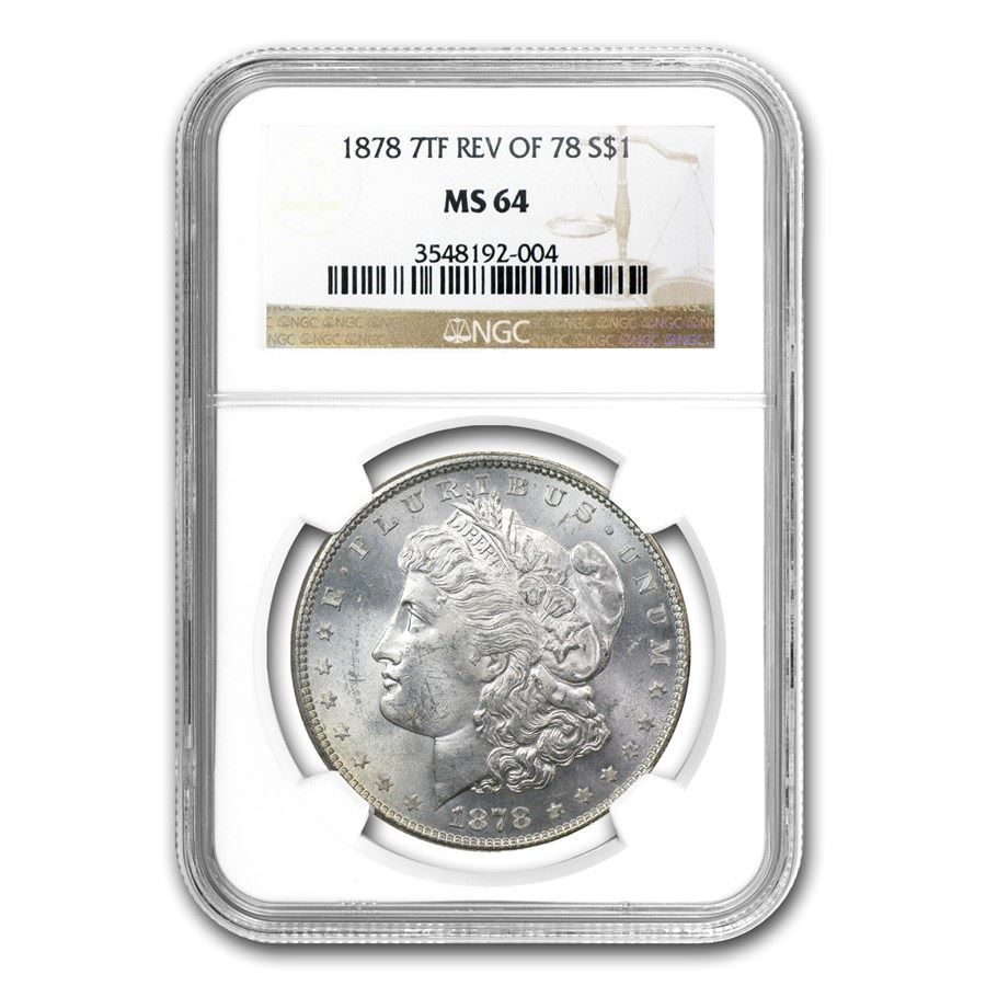 1878 Morgan Dollar 7 TF Rev of 78 MS-64 NGC