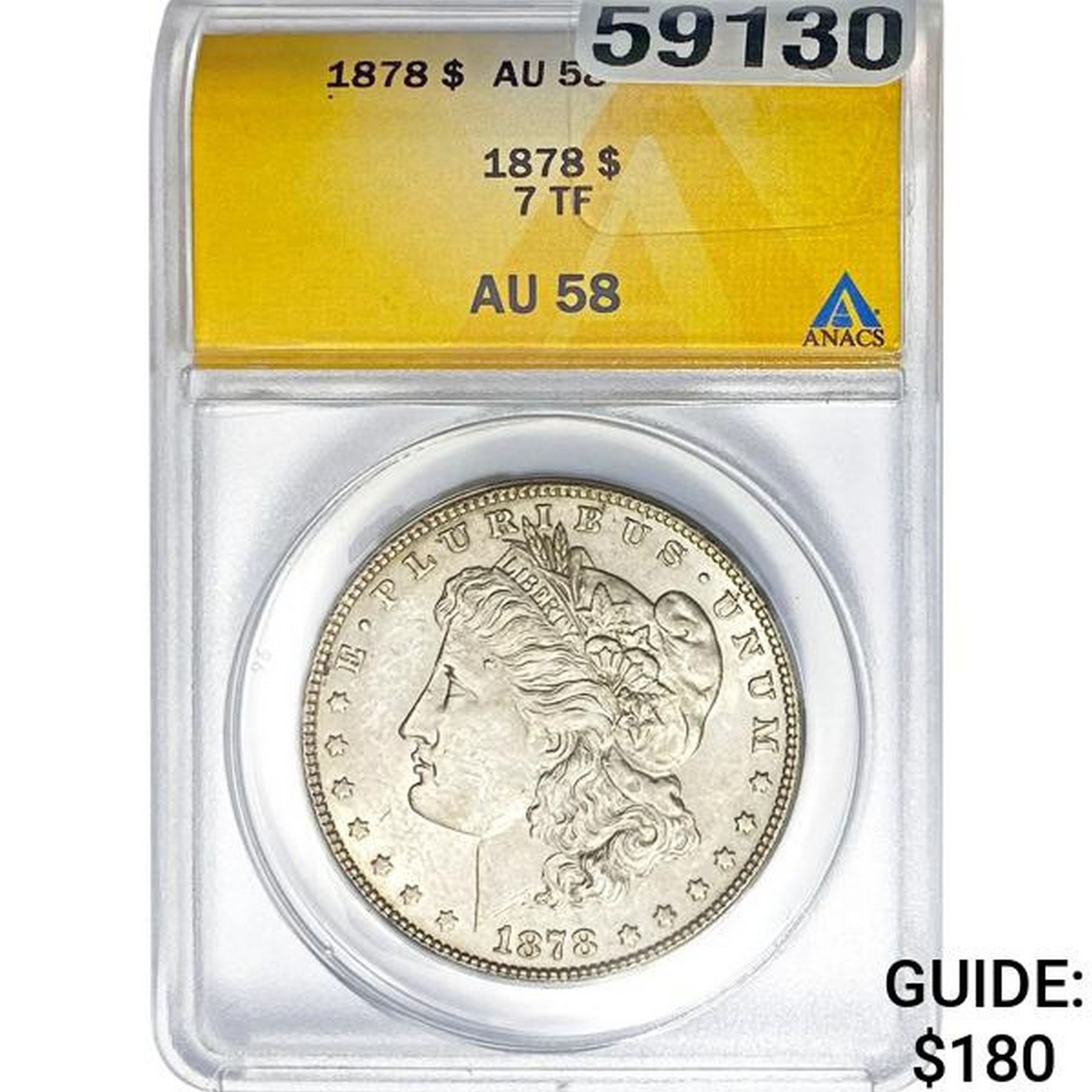 1878 Morgan Dollar 7TF ANACS AU58