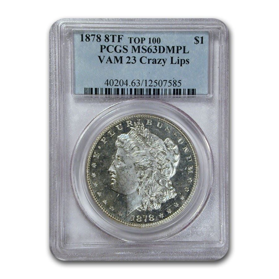1878 Morgan Dollar 8 TF MS-63 DMPL PCGS (VAM 23 Crazy Lips)