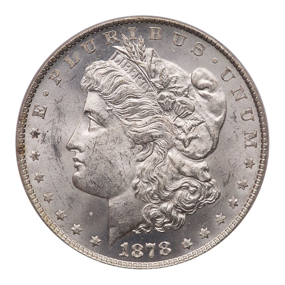 1878. 8 tail feathers. PCGS graded MS-63. Fully white PCGS # 7072 Estimated Value 190 - 200