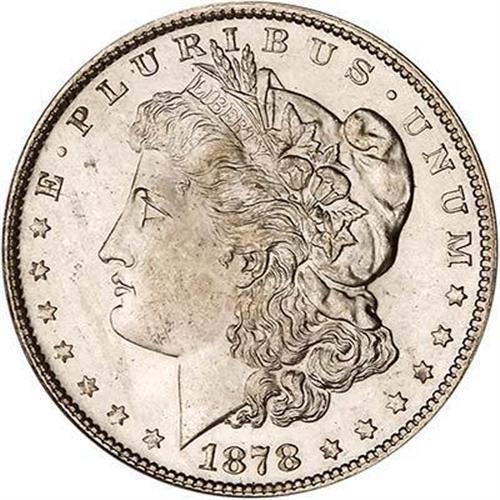 1878 Morgan Dollar. Strongly dou tail feath PCGS MS65