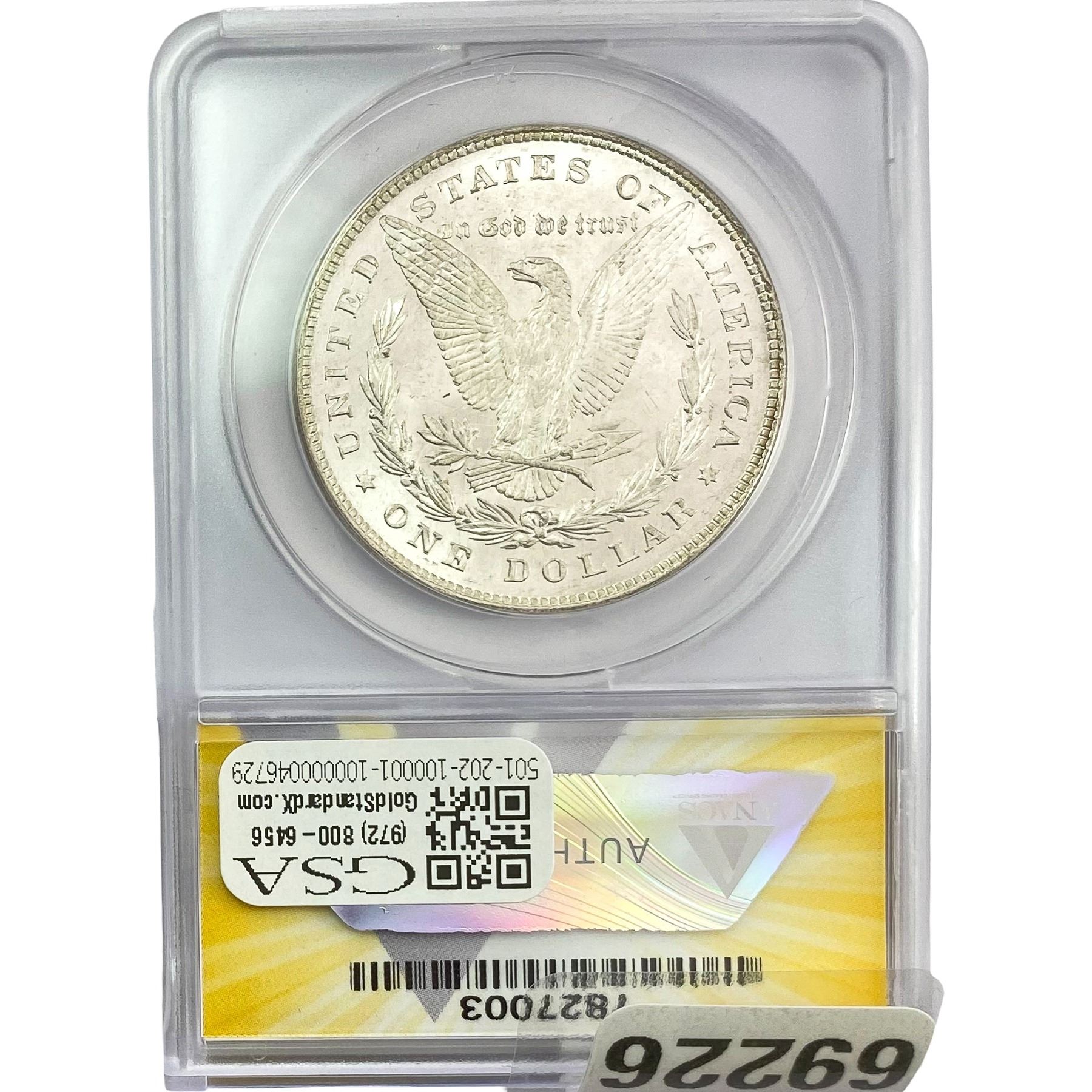 e. Coins sold referencing a third-party grading service are sold “AS IS” without any express or implied warranty, except for a guarantee by GSA that they are genuine. Removal or alteration of the holder, voids all of Bidder’s claims concerning that Product. Certain warranties may be available from the grading services and Bidders are referred to them for further details: Numismatic Guaranty Corporation (NGC), PO Box 4776, Sarasota, FL 34230, www.ngccoin.com/services/writtenguarantee.asp; Professional Coin Grading Services (PCGS), PO Box 9458, Newport Beach, CA 92658, www.pcgs.com/guarantee.html; ANACS, 6555 S. Kenton St., Ste. 303, Englewood, CO 80111; and Independent Coin Grading Co. (ICG), 7901 East Bellview, Ave., Suite 50, Englewood, CO 80111.