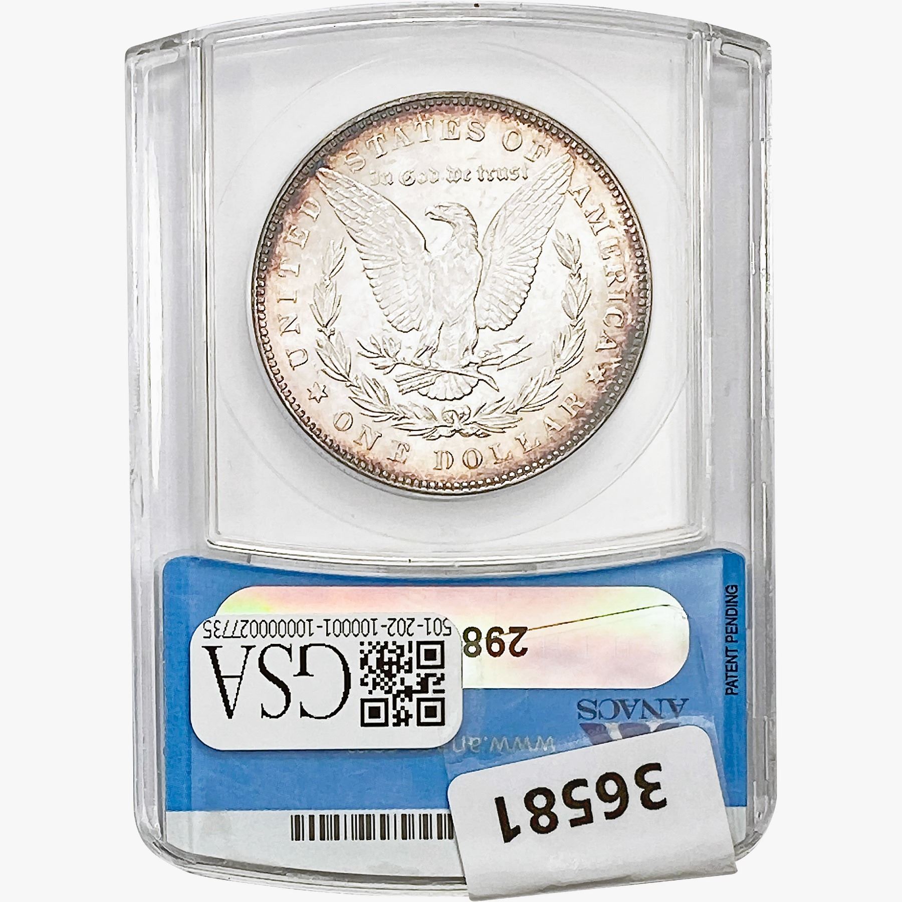 COINS AND CURRENCY LISTED IN GSA’S CATALOG AS GRADED AND ENCAPSULATED BY PCGS, NGC, ANACS, ICG, PCGS CURRENCY, PMG, PCGS BANKNOTE GRADING, CMC OR ANY OTHER THIRD-PARTY GRADING SERVICE ARE LIKEWISE SOLD “AS-IS” EXCEPT AS EXPRESSLY SET FORTH HEREIN. ALL THIRD-PARTY GRADING SERVICE GUARANTEES, INCLUDING AUTHENTICITY, ARE THE SOLE RESPONSIBILITY OF THE THIRD-PARTY GRADING SERVICE AND NOT WARRANTIES OR GUARANTEES OF GSA. BIDDERS SHOULD CONTACT THESE THIRD-PARTY GRADING SERVICES DIRECTLY WITH RESPECT TO ANY CLAIMS OR QUESTIONS THEY MAY HAVE CONCERNING THEIR GUARANTEES AND WARRANTIES. BIDDERS ACKNOWLEDGE AND AGREE THAT AUCTIONEER IS NOT BOUND BY OR LIABLE FOR ANY OPINION OR CERTIFICATION BY ANY THIRD-PARTY GRADING SERVICE. REMOVAL OF A PRODUCT FROM ITS PROTECTIVE CASING OR HOLDER OR ALTERATION OF ANY COIN HOLDER WAIVES ALL RIGHTS CONCERNING THE PRODUCT CONTAINED THEREIN.