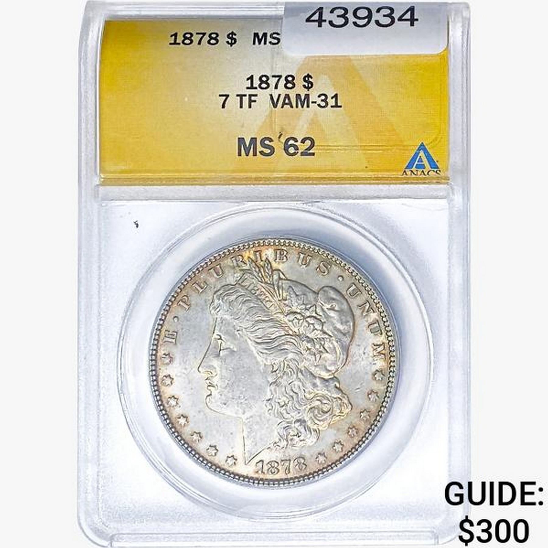 1878 Morgan Silver Dollar ANACS MS62 VAM-31